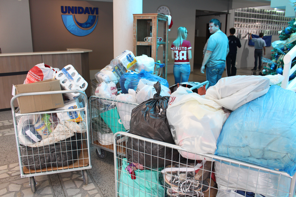 No dia 18 de novembro, os acadêmicos da 7ª fase do curso de Direito da UNIDAVI entregaram as doações de donativos, sapatos, roupas de cama e vestuário para o município de Rio do Oeste.