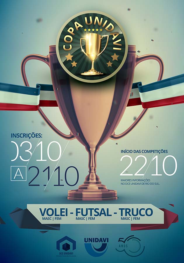 sua equipe! Regulamento e ficha de inscrição no DCE Unidavi.